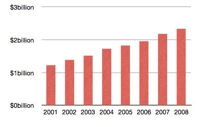 That’s about double their 2001 R&D spending. The steep increase reflects a doubling of the NIH budget in the first half of the decade and emphasizes the importance of the life sciences in the area.