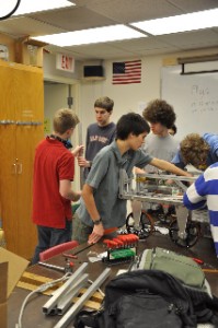 Durham students prepare for the International Robotics Competition. They had six weeks to design and build a robot.