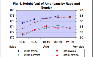 The average height of Americans rose about 2 inches in the past 150 years while the Dutch, for example, grew about 6 inches taller. In the past 20 to 30 years, American women and white American men actually shrunk a bit.