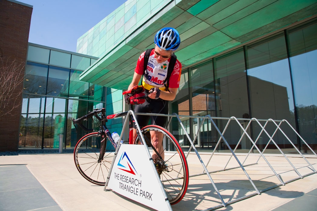 The 55-year-old facility engineering manager at Research Triangle International said he rides his Cannondale road bike to and from work every day of the year, including winter.