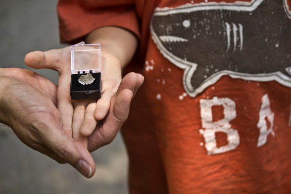 Jesse was pawing through the dirt of the fossil dig site at the Museum of Life and Science in Durham when all the sudden he hit something big: a symphesial cow shark tooth.