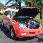 Saturday, May 1, 2010, 7:05 pm No Comments | Post a CommentN.C. State University engineering students participating in the national EcoCAR Challenge for the first time Saturday showed off their entry: A Saturn Vue that runs up to 65 miles on electricity.